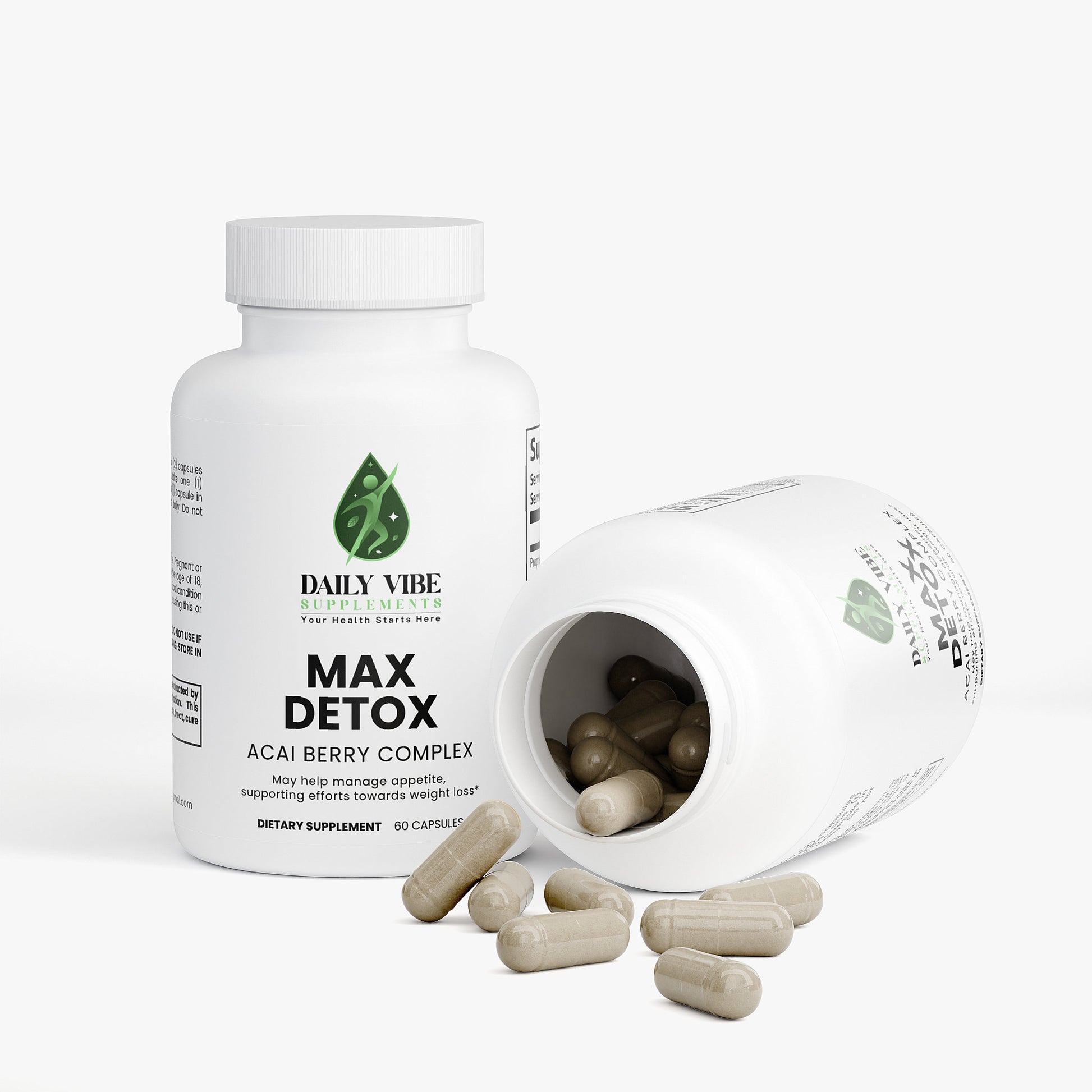 The benefits of cleansing are no longer exclusive to spa enthusiasts. People recognize the importance of cleansing their bodies to maintain a healthy lifestyle. Max Detox is a dietary supplement that combines a range of carefully selected natural ingredients, each traditionally incorporated for its unique properties. This blend includes Psyllium Powder, which is a source of fiber, and Acai Berry Extract, known for its use in various traditional nutritional practices. Chlorella, a type of green algae, contributes its own unique nutrient profile to the formula. Additionally, Slippery Elm Bark and Aloe Ferox Powder are included for their historical use in herbal preparations. The formulation also contains Black Walnut Hulls, Ginger Root, and Papaya Fruit Powder, ingredients often used in traditional diets for their diverse culinary properties. Hyssop Leaf and Lycopene, derived from tomatoes, are also part of this diverse blend, encapsulated in a vegetable capsule suitable for vegetarians.*